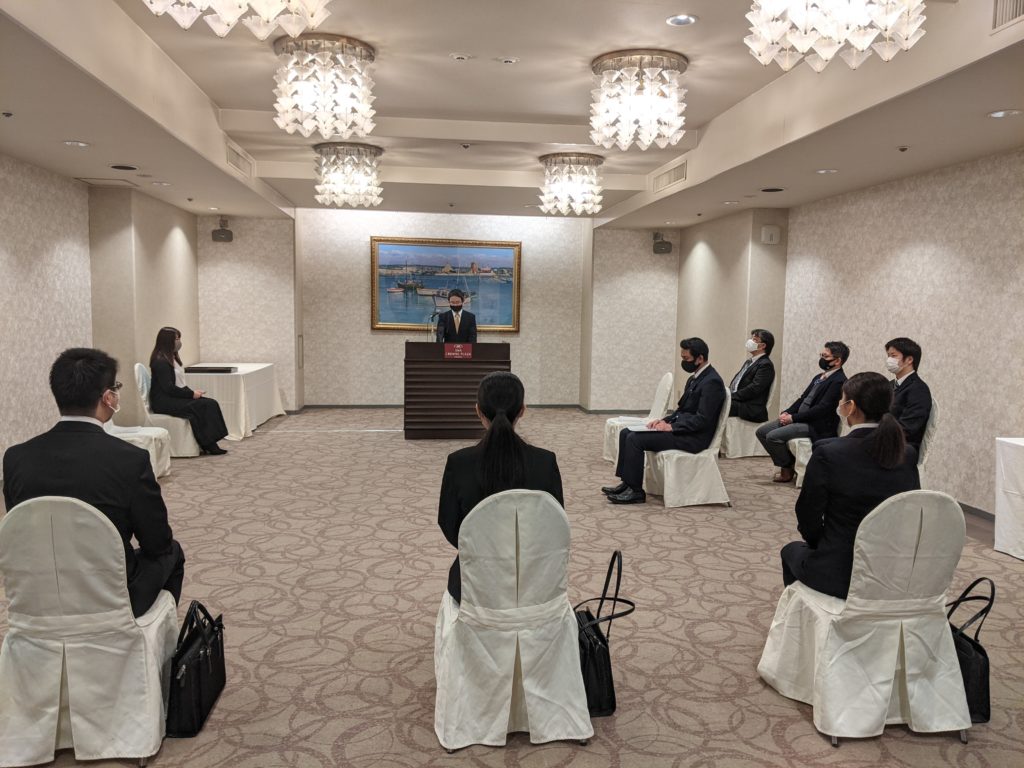 今回の内定式は緊急事態宣言中のため、感染状況を踏まえた上で福岡のみでの開催とさせていただきました。